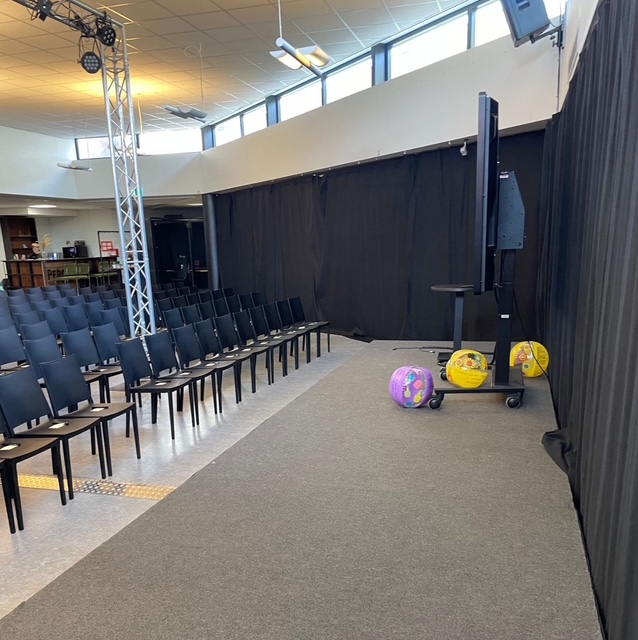Backdrop Theaterdoek zwart molton 6×3 meter voorzien van lussen. Onze theaterdoeken zijn brandvertragend. Wij kunnen doormiddel van een palensysteem de constructie iedere x met 3 meter uitbreiden.