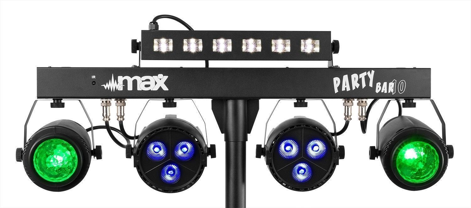 De MAX Partybar10 is de perfecte lichtset voor bijvoorbeeld de mobiele DJ of voor een ruimte waar regelmatig een feestje wordt gevierd. De set bestaat uit meerdere lichteffecten die aan een T-bar zijn gemonteerd. De meegeleverde standaard zorgt ervoor dat het geheel eenvoudig op hoogte geplaatst kan worden. In totaal beschikt de Partybar10 over 4 lichteffecten zodat je zeker bent van een leuke en afwisselende lichtshow.