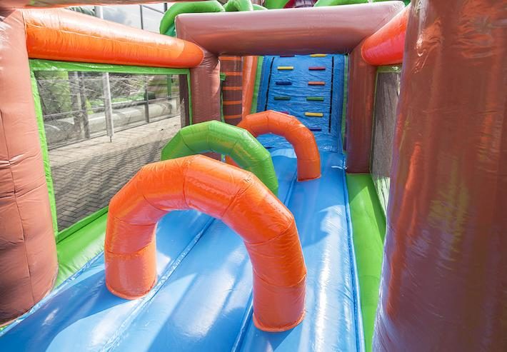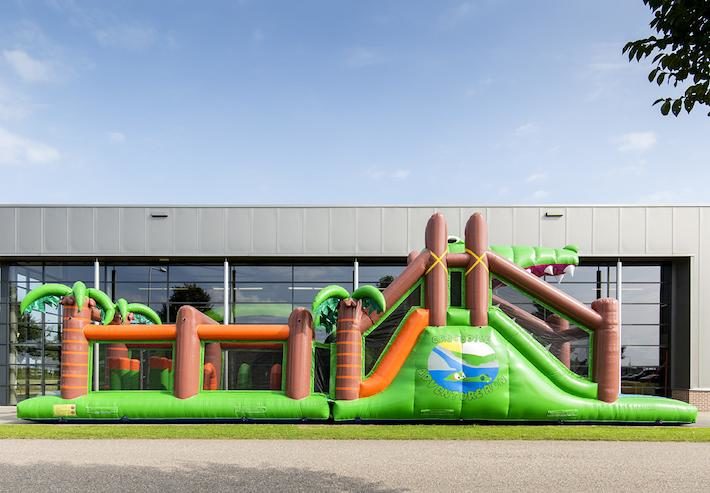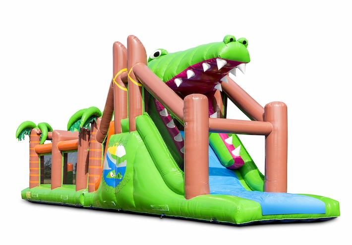 Bezorg kinderen de dag van hun leven met deze unieke stormbaan met krokodil thema! Wie van de twee spelers weet het snelste de obstakels te overwinnen, als eerste over de glijbaan te glijden en het einde van de baan te behalen? zorgt voor urenlang speelplezier. Garandeer een actieve beleving met maar liefst 7 spelelementen verdeeld over een extra brede baan van 17 meter.